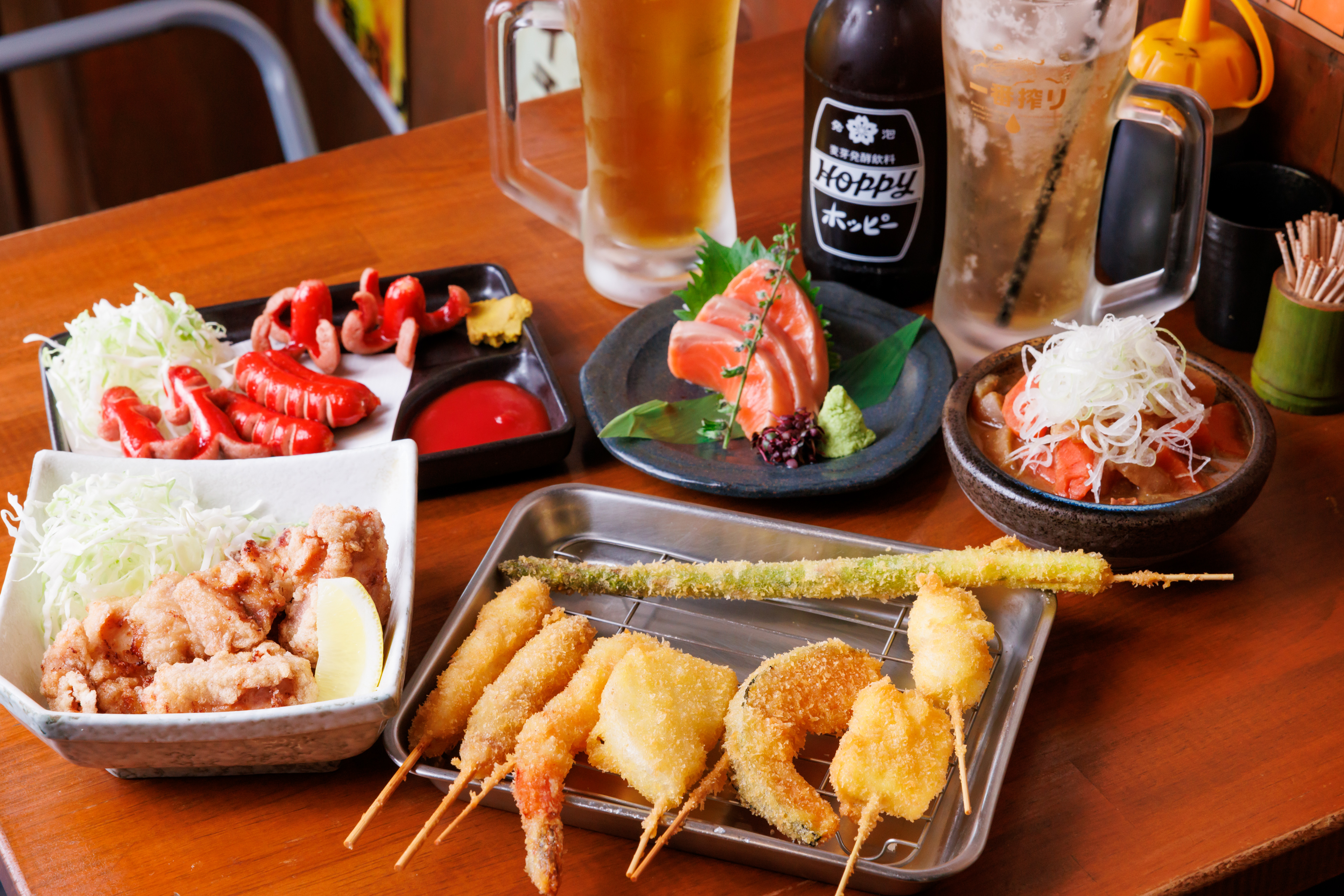 サクサクの串揚げや一品もの、〆のご飯ものまで幅広くご用意しております!種類豊富なドリンクと一緒にお楽しみください。